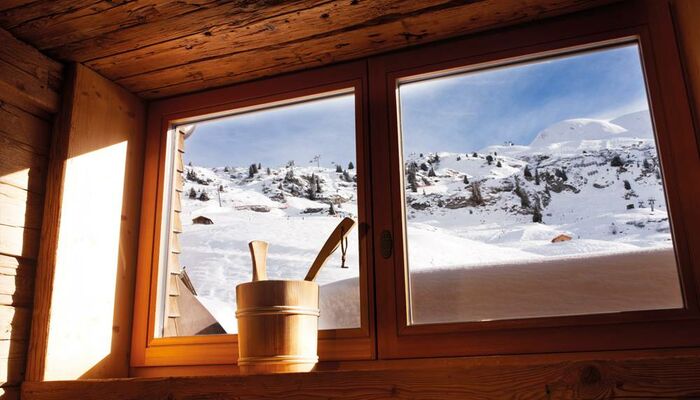 Sentiti libero di rilassarti nel comfort divino con le nostre strutture esclusive che vanno dalla nostra sauna finlandese, bagno turco, sala di ghiaccio e docce a pioggia alla nostra sala relax con finestre alte che offrono una vista spettacolare sulle montagne.