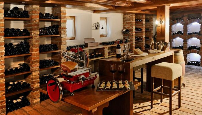 I nostri ospiti possono anche avere l`opportunità di unirsi a noi nella nostra attraente e autentica cantina; per una degustazione di vini, con specialità culinarie della cucina.